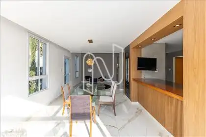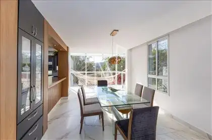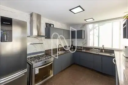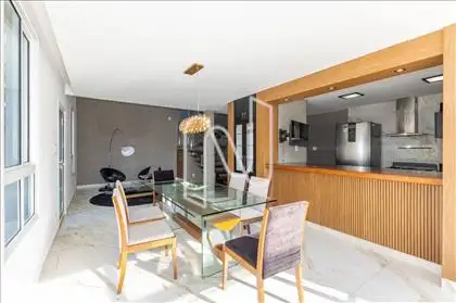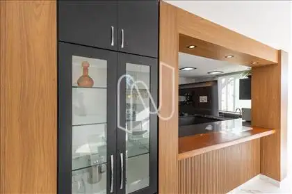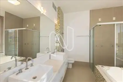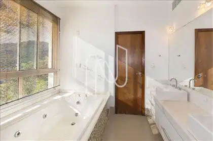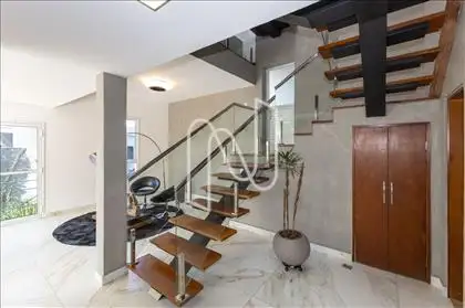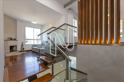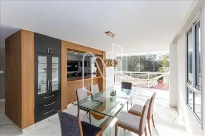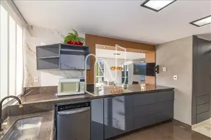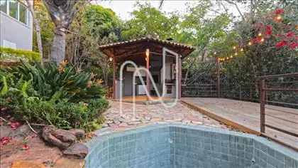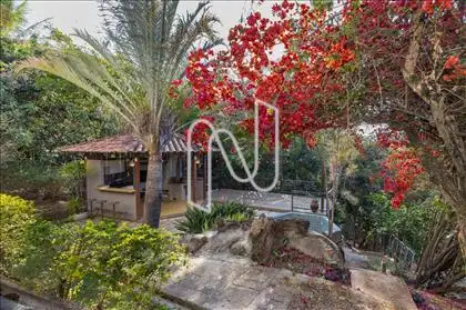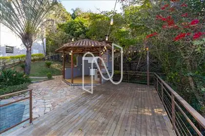 Espaço gourmet completo, equipado com churrasqueira, fogão a lenha, banheiro de apoio e brinquedoteca. Conta ainda com ofurô, deck de madeira e quintal arborizado.